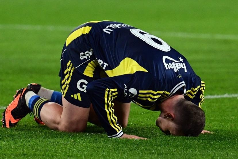 Fenerbahçe'nin milli futbolcusu Kerem Aktürkoğlu, Gençlerbirliği maçında attığı 2. golün ardından secdeye gitti.