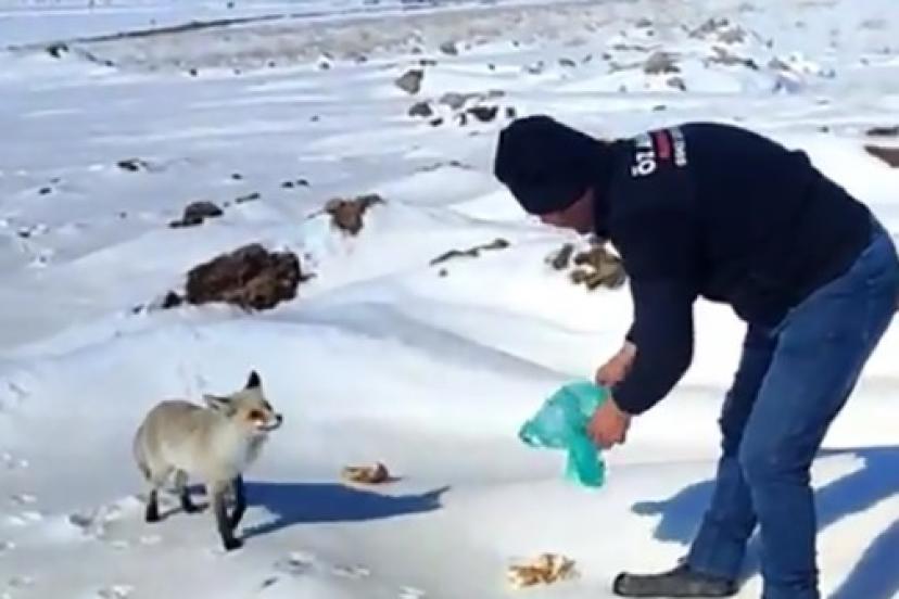 Doğada yiyecek bulmanın zorlaştığı kış günlerinde tilkiye yardım ettiklerini belirten işçiler, hayvanlara karşı duyarlı olunması gerektiğini ifade etti.