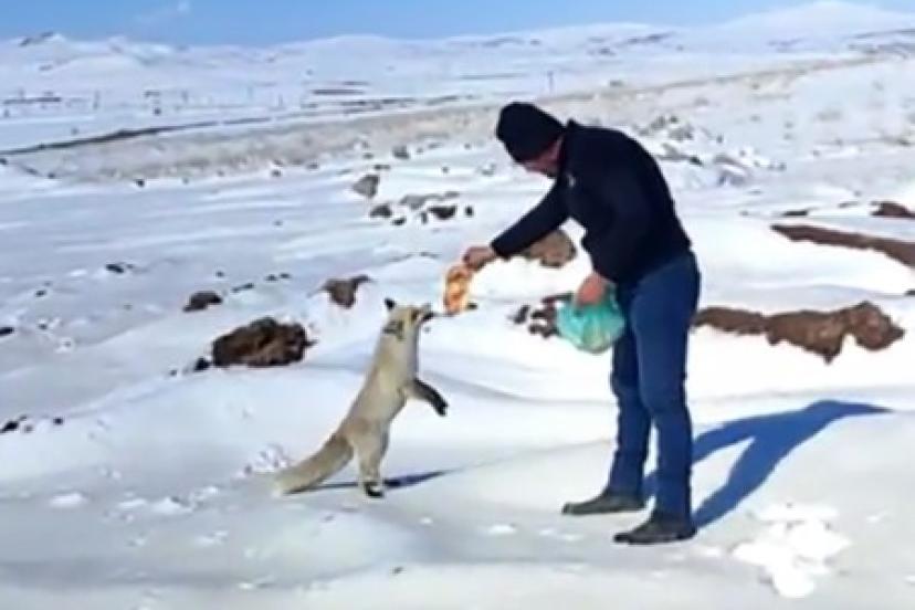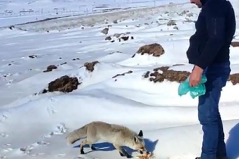 Kışın zor günlerinde tilkiye işçilerden şefkat eli