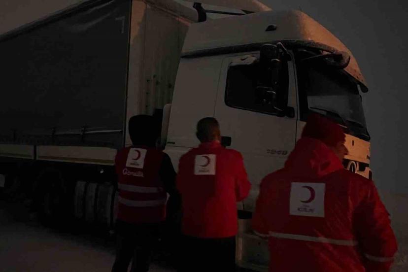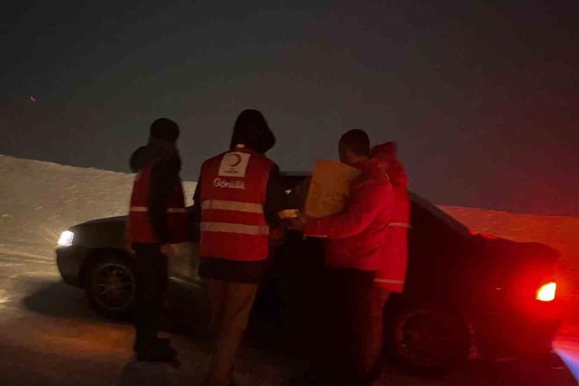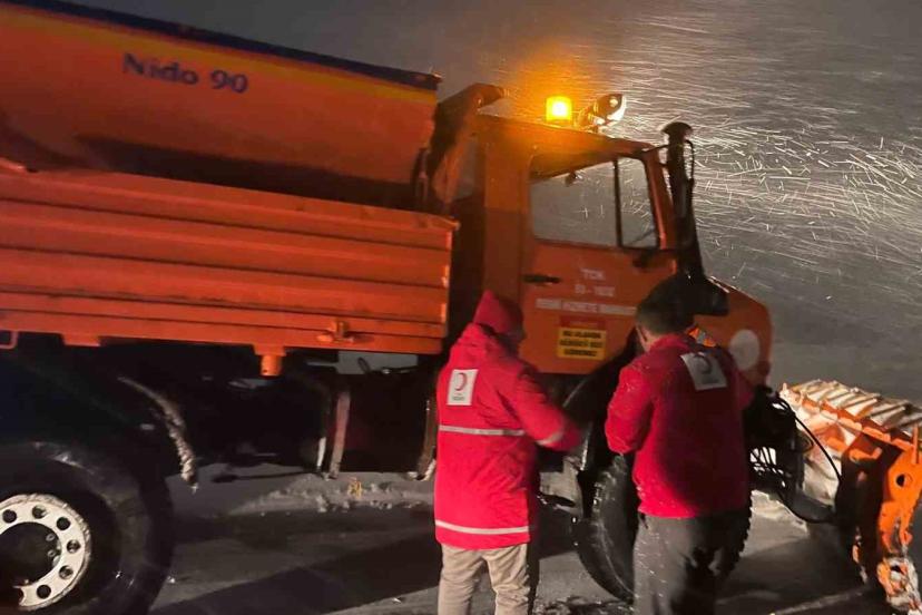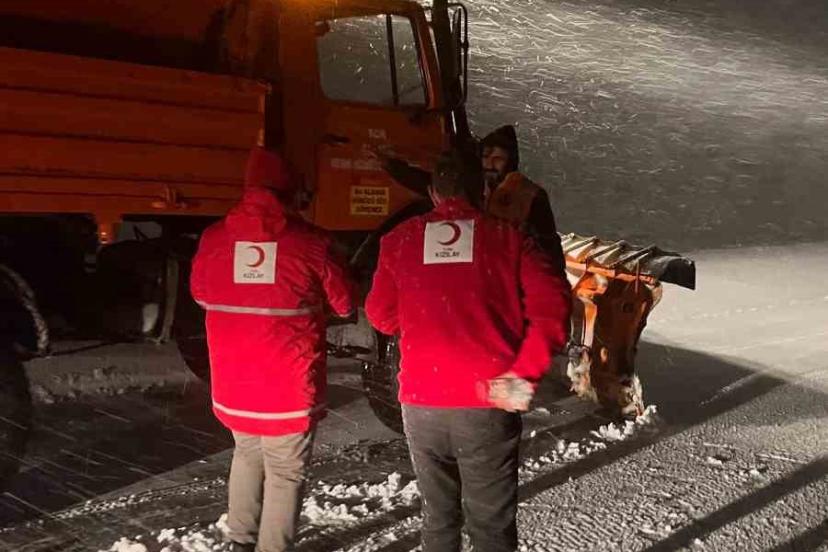 Kızılay’dan mahsur kalan sürücülere kumanya desteği