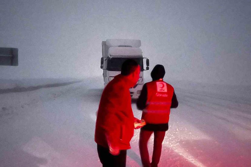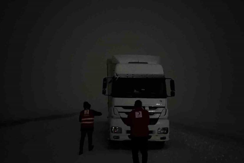 Zorlu hava şartlarına rağmen gece boyunca sahada görev yapan Kızılay ekipleri, Tendürek Geçidi’nde ilerlemekte güçlük çeken tır şoförlerine kumanya, sıcak çay ve çeşitli ikramlarda bulundu. Yoğun kar ve tipi altında gerçekleştirilen çalışmalarda sürücülerin temel ihtiyaçları karşılanırken, moral ve motivasyon desteği de sağlandı.