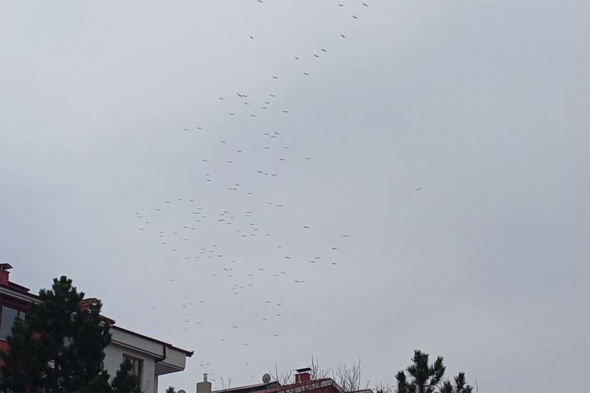 Konya’da baharın habercisi olarak bilinen leylekler sürü halinde gökyüzünde görüntülendi.