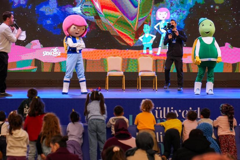 Çocuklara eğlenerek öğrenme imkanı sunan programda, sahnedeki gösterilere çocuklar dans ederek eşlik etti.