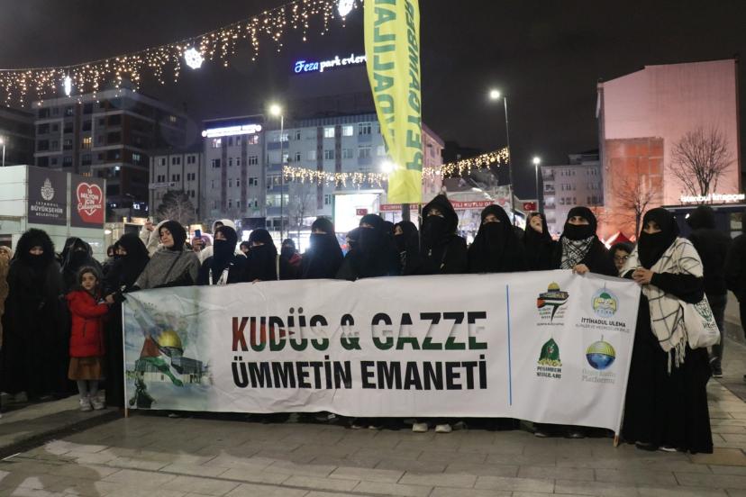 Teravih namazının ardından "Küresel barışın anahtarı Kudüs ve Aksa'nın özgürlüğüdür" temasıyla Bağcılar, Esenyurt, Sultangazi, Zeytinburnu, Üsküdar, Sultanbeyli, Kartal ve Pendik ilçelerinde eş zamanlı olarak gerçekleştirilen basın açıklamalarında, şer ittifakının İslam coğrafyalarında sürdürdüğü katliamlar ve Mescid-i Aksa'ya yönelik sinsi planlara dikkat çekilerek ümmetin birlikte hareket etmesi gerektiği vurgulandı.