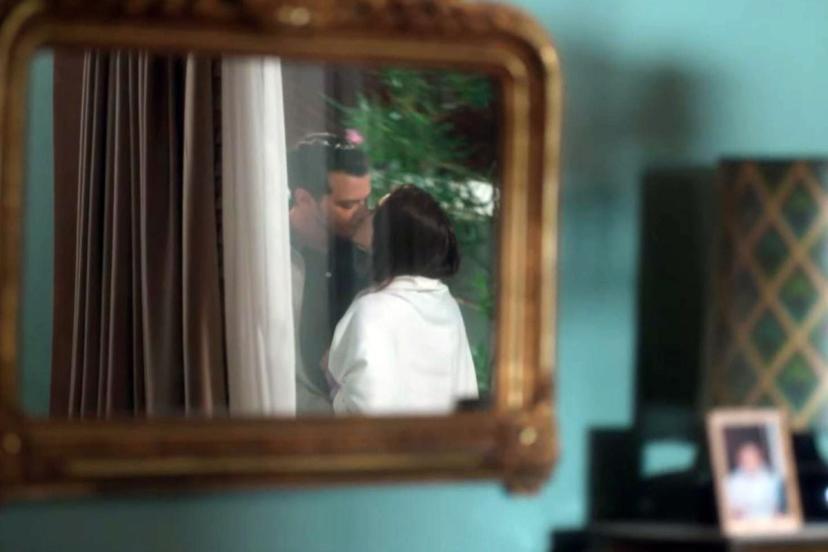 Kıskanmak dizisinde ikilinin öpüştükleri andan bir kare...
