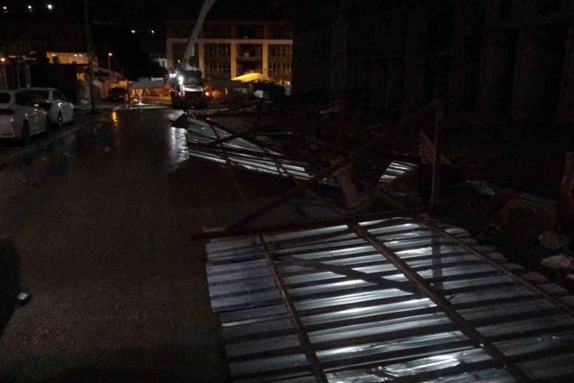 Malatya’da, gece yarısı etkili olan şiddetli fırtına sağanak ile birleşince ağaçları kökünden sökerken, bazı noktalarda evlerin çatıları uçtu konteyner iş yerlerinin tabelaları şantiye çevrelerindeki bariyerler devrildi.
