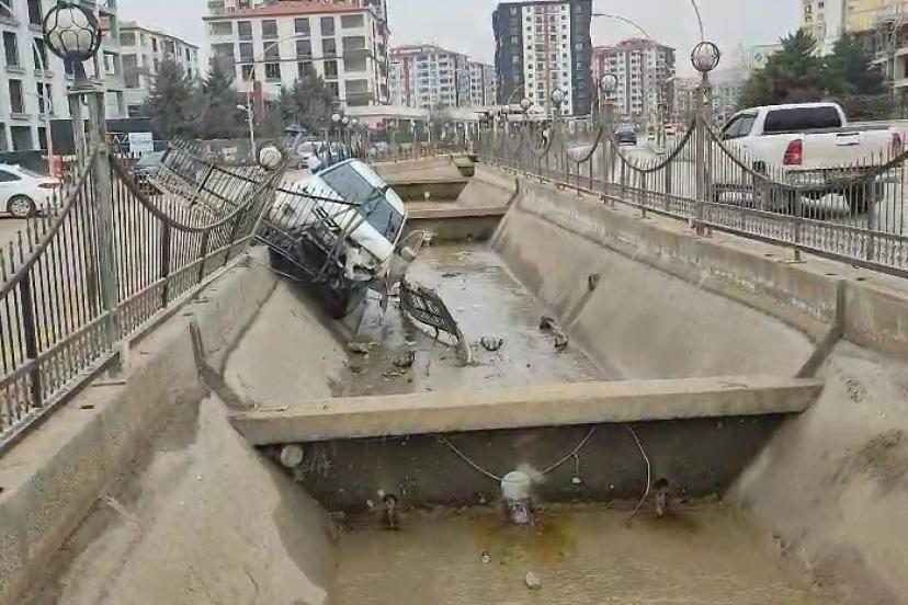 Malatya’da kontrolden çıkan pikap kanala uçtu