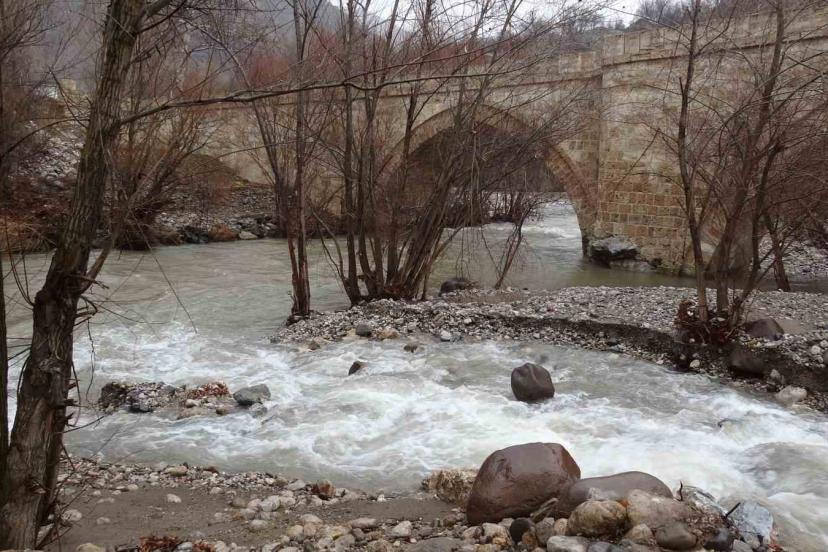 Malatya’nın Arapgir ilçesinde etkili olan sağanak ve kar yağışı, Kozluk Çayı’nın taşmasına neden oldu.