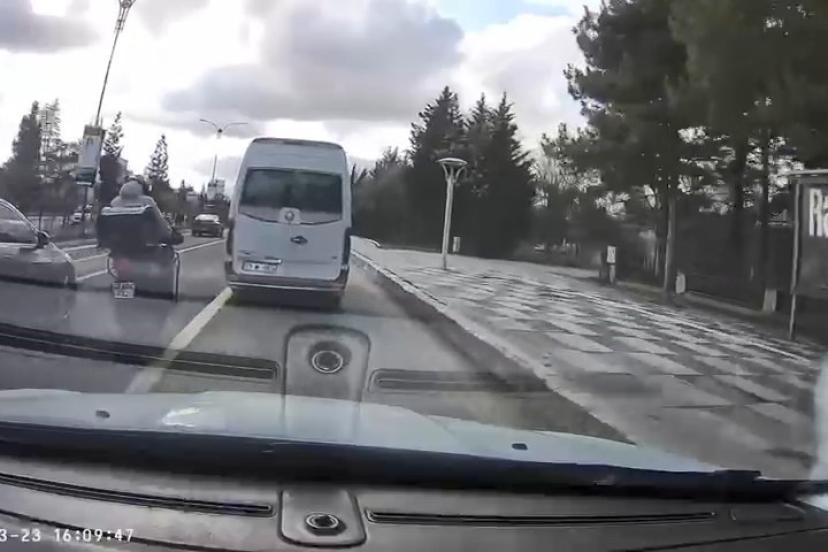 Olay, merkez Zübeyde Hanım Caddesi’nde yaşandı. Edinilen bilgiye göre, plakası ve sürücüsü öğrenilemeyen motosiklet, minibüs ve otomobilin arasından geçerek yürekleri ağza getirdi. Akan trafikte hem kendi canını hem de diğer sürücülerin canını tehlikeye atan sürücünün o anları ise bir aracın kamerasına yansıdı.