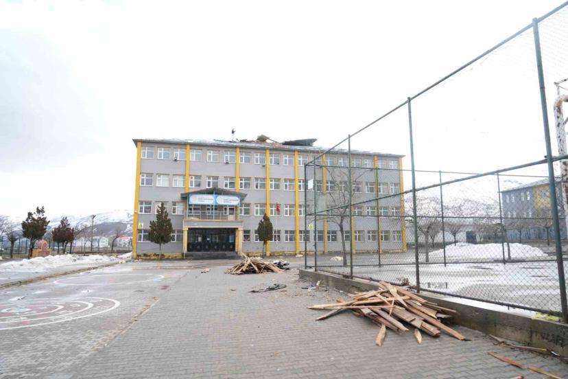 Muş’ta akşam saatlerinde etkili olan şiddetli fırtına nedeniyle çatısı hasar gören okulda güvenlik gerekçesiyle eğitime iki gün ara verildi.