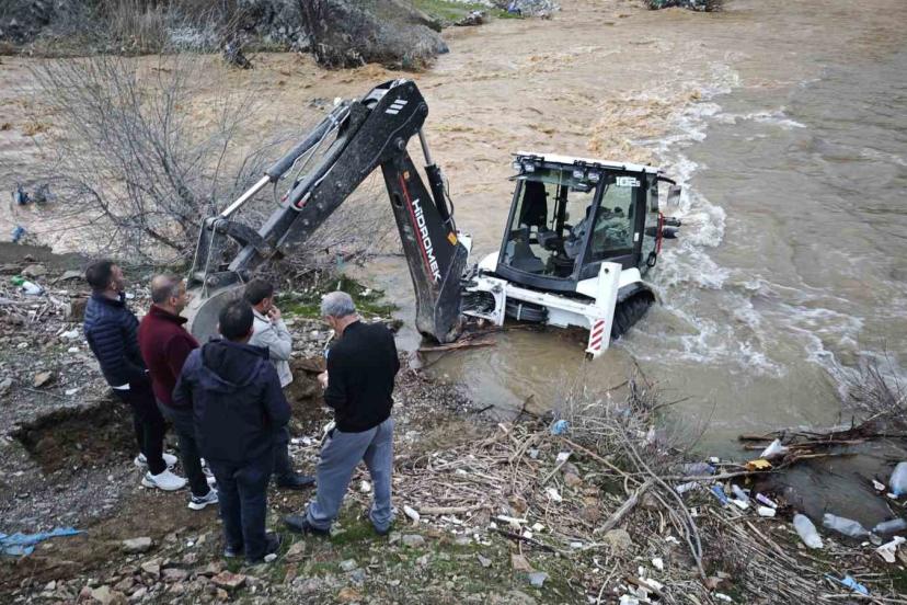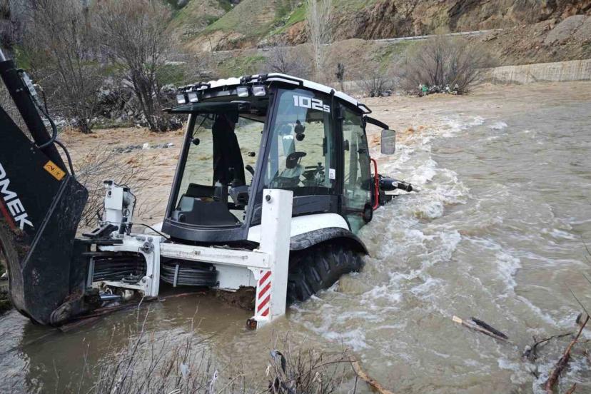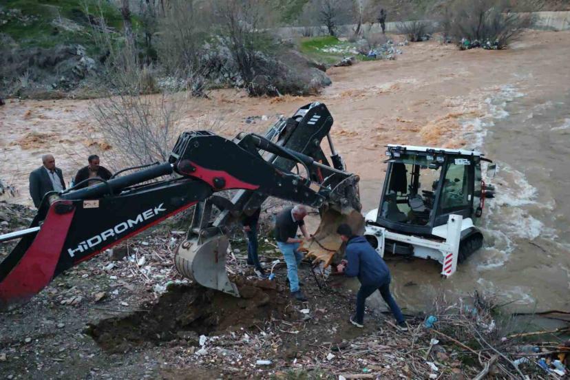 Mutki’de dereye kapılan kepçe kurtarıldı