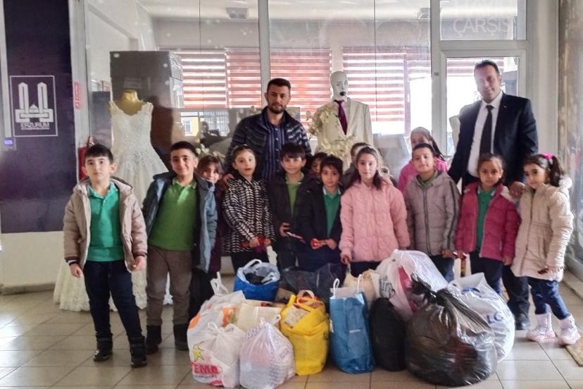 Erzurum Şehit Kubilay Karaman İlkokulu öğrencileri, Büyükşehir Belediyesi’ne bağlı Hayır Çarşısı’na gıda bağışında bulundu.