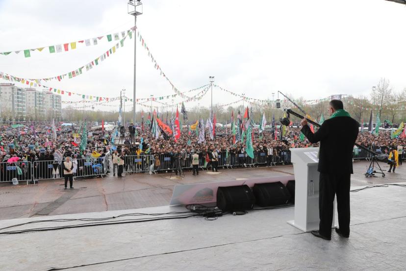 Peygamber Sevdalıları Vakfı tarafından bu yıl "Vahdet ve Kurtuluş Önderimiz Hazreti Muhammed" temasıyla düzenlenen Mevlid-i Nebi mitingi, Bağlar ilçesinde bulunan Nevruz Park Alanı'nda düzenlendi.