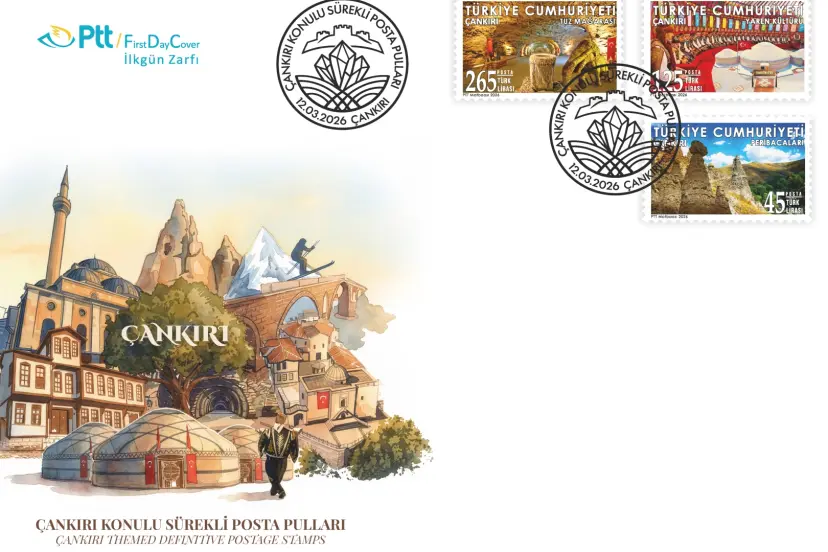 PTT AŞ, 12 Mart 2026 tarihinde “Çankırı” konulu 45 TL, 125 TL, 265 TL (26 x 41 mm boyutunda) bedelli sürekli posta pulları ile söz konusu pullara ait 480 TL bedelli ilkgün zarfını abone sayısı kadar PTT iş yerlerinde ve PTT AŞ’ye ait www.filateli.gov.tr web adresinde satışa sundu.