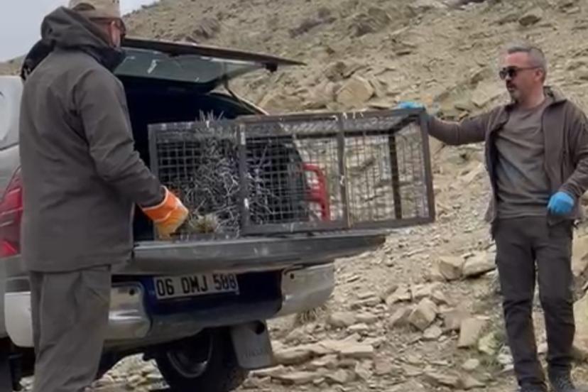 Hakkari’nin Yüksekova ilçesinde yaralı halde bulunan Hint oklu kirpi, Van’daki tedavisinin tamamlanmasının ardından doğal yaşam alanına bırakıldı.