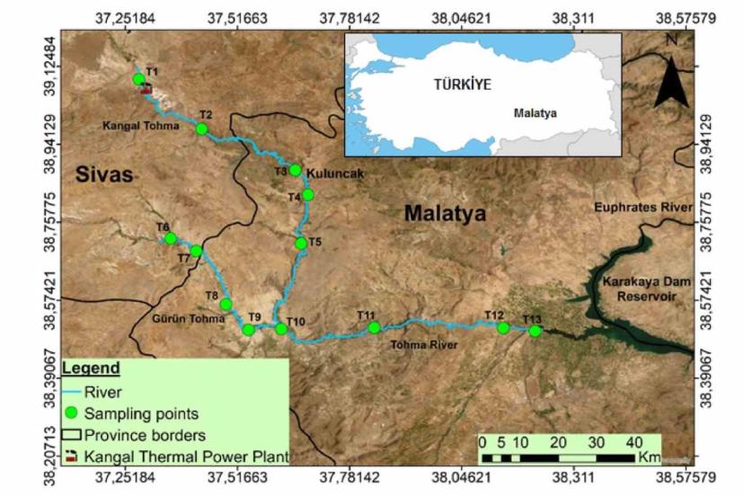 Sivas’ta doğan ve Malatya’dan geçerek Karakaya Barajı’na ulaşan, aynı zamanda Fırat Nehri’nin önemli kollarından biri olan Tohma Çayı; tarımsal sulama, balıkçılık ve ekosistem sürdürülebilirliği açısından kritik öneme sahiptir. 2023-2024 yılları arasında nehrin 13 farklı noktasından alınan su ve sediman örnekleri üzerinde yapılan analizler sonucunda su içerisindeki ağır metal seviyelerinin, Dünya Sağlık Örgütü ve Avrupa Birliği limit değerlerinin altında olduğu, mevcut şartlarda insan sağlığı açısından kanserojen risk bulunmadığı ve suyun tarımsal sulama ve sucul yaşam açısından uygun olduğu belirlenmiştir.