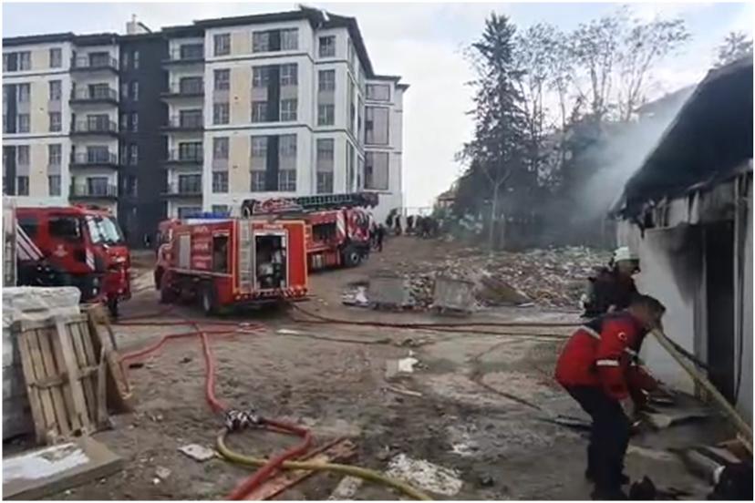 TOKİ şantiyesindeki işçi konteynerlerinde yangın