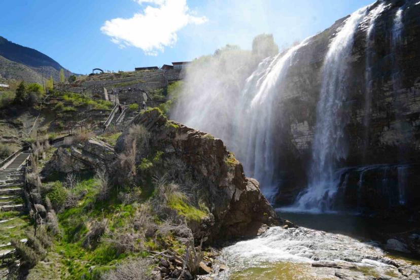Erzurum’un Uzundere ilçesinde bulunan ve UNESCO Dünya Mirası Listesi’ne aday gösterilen Tortum Şelalesi, baharın gelişiyle birlikte en coşkulu günlerini yaşıyor. Kış mevsiminde dağlarda biriken karların hızla erimesi, şelalenin su debisini zirveye çıkardı. Yaklaşık 48 metrelik yükseklikten dökülen devasa su kütlesi, oluşturduğu dev kazan ve etrafa saçtığı su damlacıklarıyla doğaseverlere unutulmaz anlar yaşatıyor.