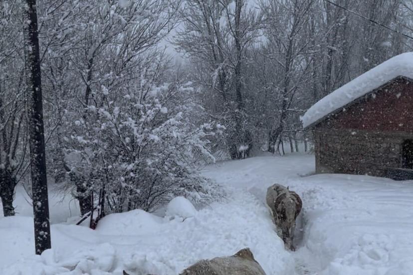 Tunceli’nin Ovacık ilçesinde kar kalınlığı 1,5 metreyi aştı. İneklerin karlar arasında adeta kaybolduğu anlar vatandaşlar tarafından görüntülendi.