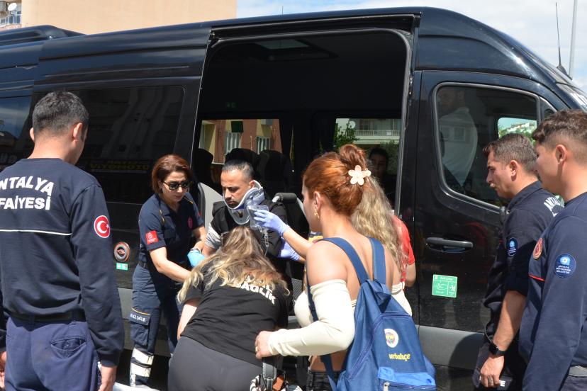 Kaza, saat 11.00 sıralarında Antalya- Alanya kara yolu üzerinde meydana geldi. Ramazan Dağ'ın kullandığı 07 BRM 929 tur minibüsü ile Yusuf Kumbul'un kullandığı 07 YT 009 plakalı otomobil çarpıştı. Kazada otomobilde sıkışan sürücü ile tur minibüsündeki yabancı uyruklu kişi yaralandı. İhbarla olay yerine gelen itfaiye ve sağlık ekipleri araçta sıkışan sürücüyü kurtardı. Yaralılar sağlık ekiplerinin yaptıkları ilk müdahalenin ardından Serik Devlet Hastanesine götürülerek tedaviye alındı. Kazayla ilgili inceleme başlatıldı.