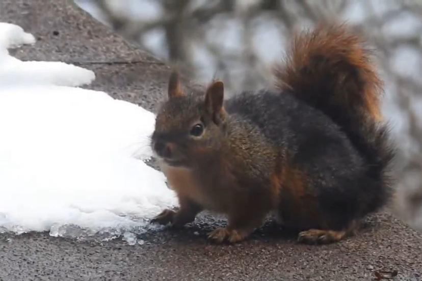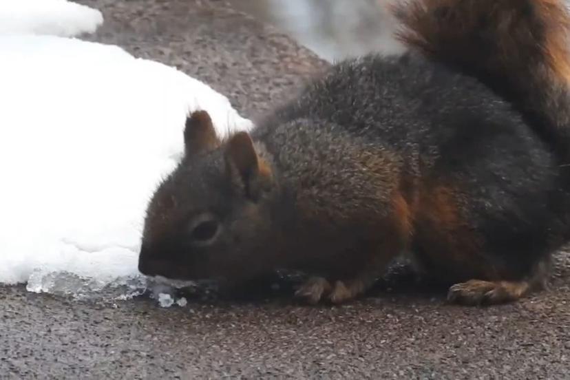 Uludağ’da su kaynakları donunca sincaplar susuzluğunu karla gideriyor