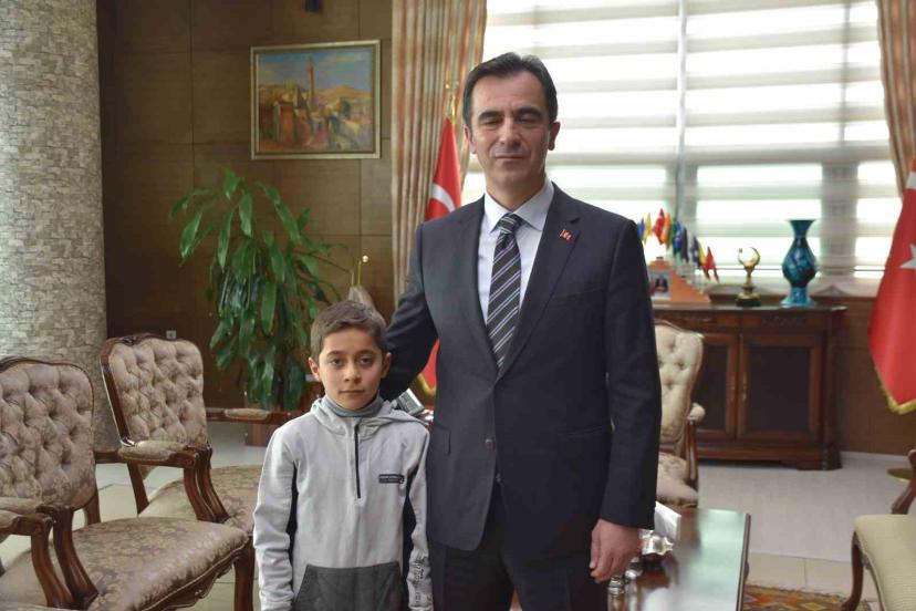 BİTLİS (İHA) – Bitlis Valisi Ahmet Karakaya, etkili olan yoğun kar yağışına rağmen okul bahçesinde okunan İstiklal Marşı’na coşkuyla eşlik eden öğrenciyi makamında kabul ederek teşekkür etti.