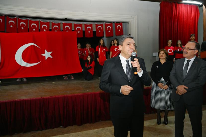 ANTALYA, (DAH)- AKSU Fen Lisesi’ni ziyaret eden Vali Hulusi Şahin, 'İlk Dersimiz: Bayrak Sevgisi' temalı programa katıldı.