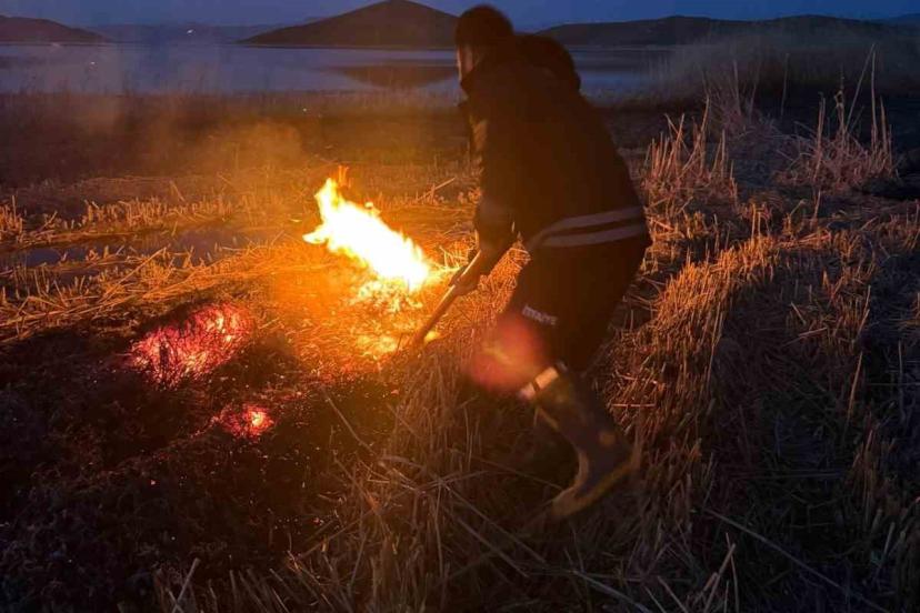 Öte yandan diğer sazlık alanı yangını ise Erçek Mahallesi’nde meydana geldi. İhbar üzerine bölgeye sevk edilen Erçek İtfaiye Grup Amirliği ekiplerinin yarım saatlik müdahalesinin ardından yangın söndürüldü.