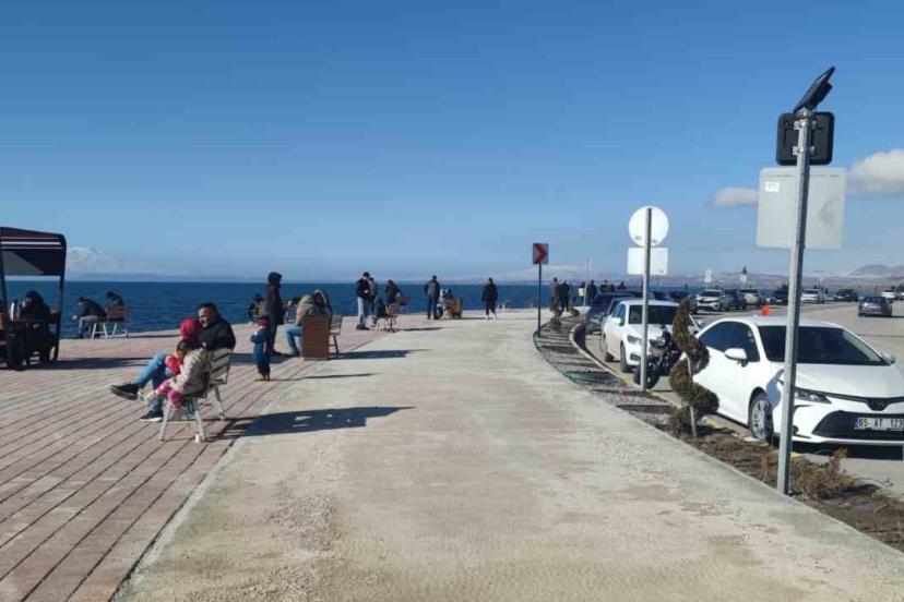 Van’da dondurucu kış şartlarının ardından yüzünü gösteren güneşli hava, hayatı canlandırdı. Şubat ayının ortasında termometrelerin mevsim normallerinin üzerine çıkmasını fırsat bilen Vanlılar, soluğu Van Gölü kıyısında aldı.