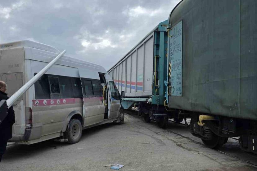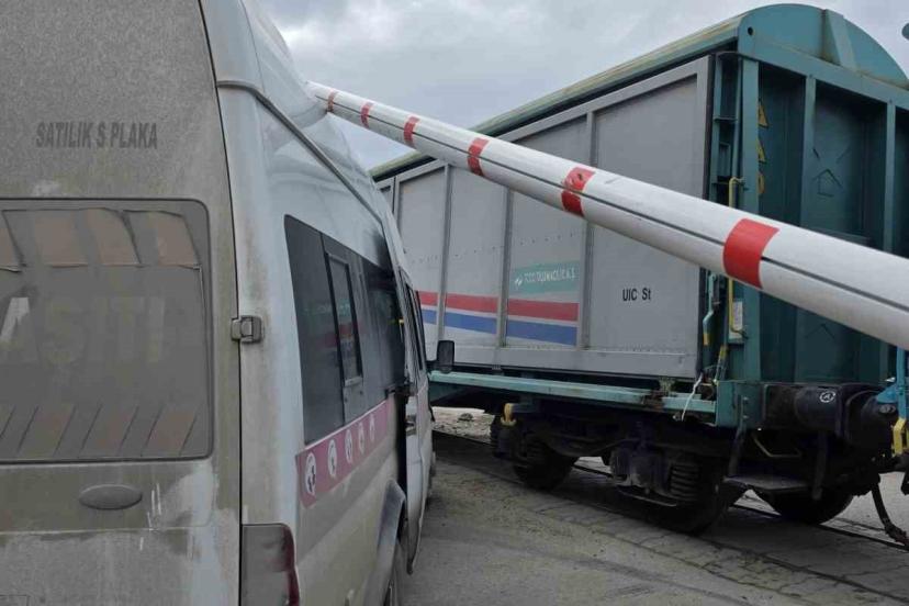 Van’ın Tuşba ilçesinde hemzemin geçitte tren ile okul servisi çarpıştı. Faciadan dönülen kaza maddi hasarla atlatıldı.