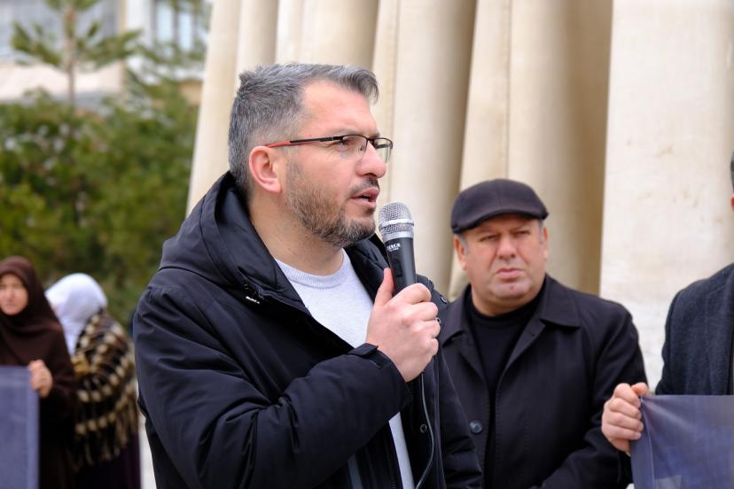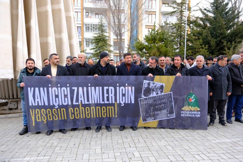 Cuma namazı sonrası Yukarı Nurşin Camii önünde yapılan açıklamayı Peygamber Sevdalıları Vakfı Van İl Koordinatörü Ahmet Faruk Çevik okudu.