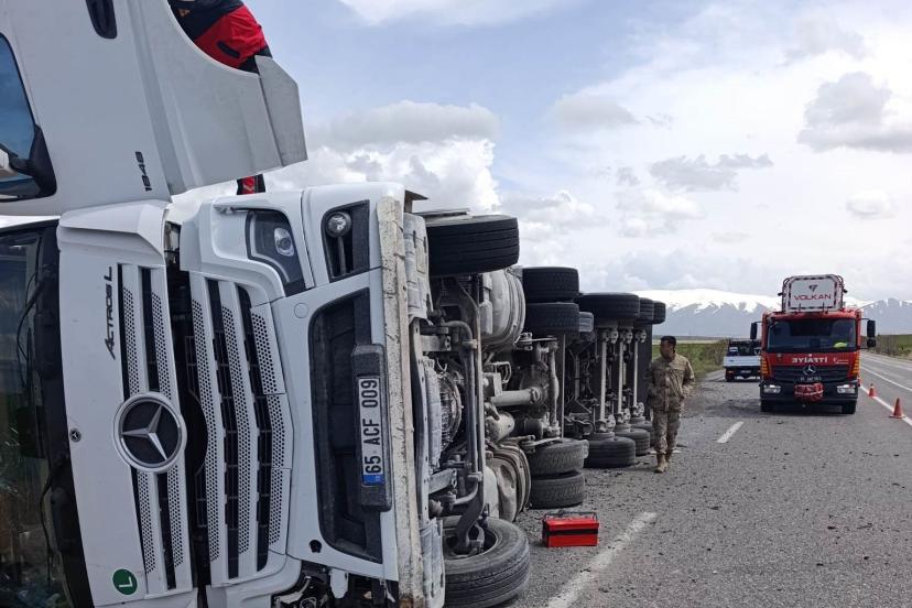 Van’da tır devrildi: 1 yaralı