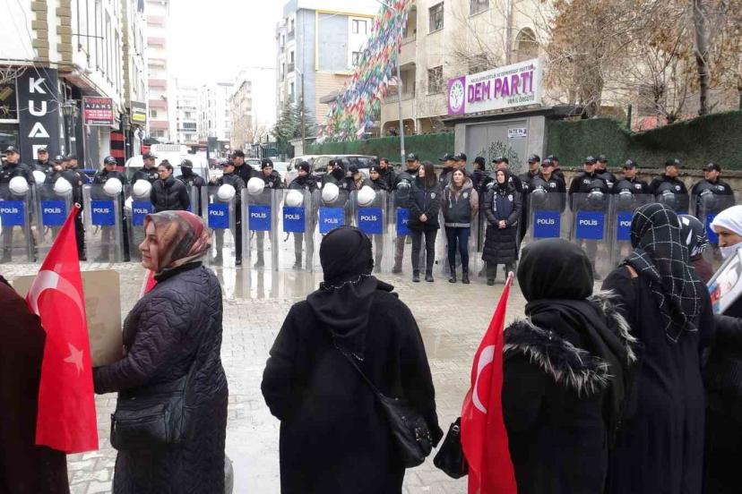 Van’da terör örgütü PKK tarafından çocukları dağa kaçırılan ailelerin başlattığı evlat nöbeti devam ediyor. Ellerindeki Türk bayraklarıyla DEM Parti İl Başkanlığı önüne kadar sessiz bir şekilde yürüyen ve tek amaçlarının evlatlarına kavuşmak olduğunu belirten aileler, çocuklarına ‘teslim olun’ çağrısında bulundu.