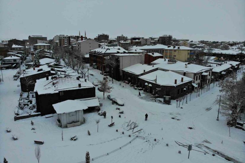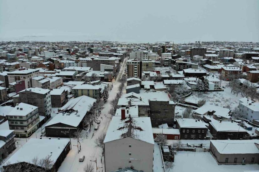 Kars’ta son 15 yılın en yoğun kışı yaşanıyor. Kentte 2 gündür yaşanan bahar havası yerini kar yağışına bıraktı. Gece sabaha doğru başlayan kar yağışı kısa sürede etrafı beyaza bürüdü. Beyaza bürünen Kars havadan görüntülendi.