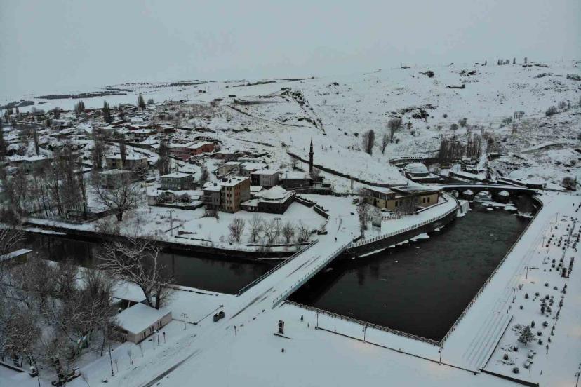 Yeniden beyaza bürünen Kars havadan görüntülendi