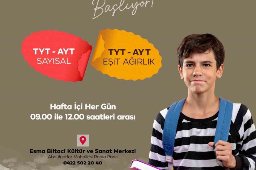 Yeşilyurt Belediyesi, gençlerin eğitim hayatına katkı sunmak ve üniversite hayallerine bir adım daha yaklaşmalarını sağlamak amacıyla hızlandırılmış YKS kurslarını başlattı. Eğitimde fırsat eşitliğini önceleyen sosyal belediyecilik anlayışıyla hayata geçirilen kurslar, Esma Biltaci Kültür ve Sanat Merkezi’nde öğrencilerle buluşuyor.