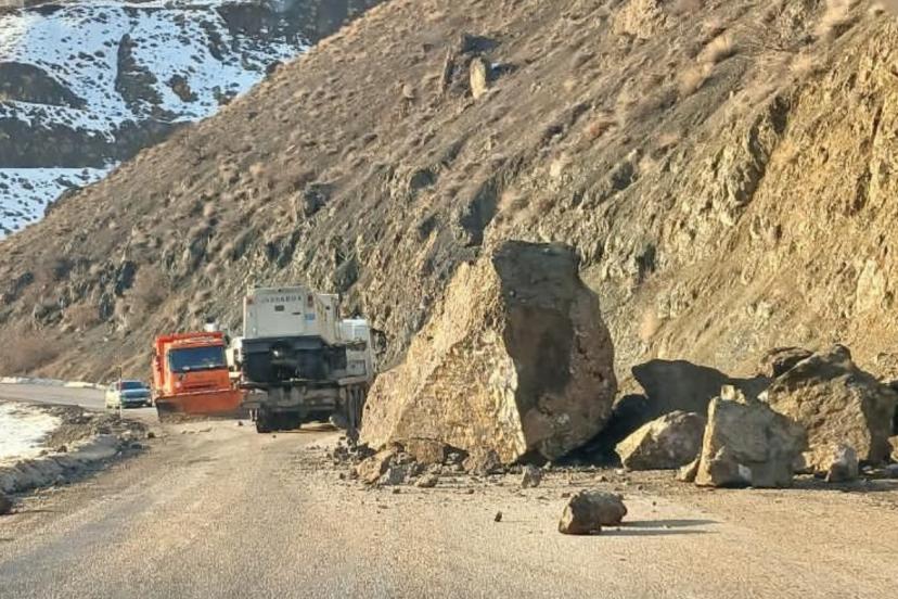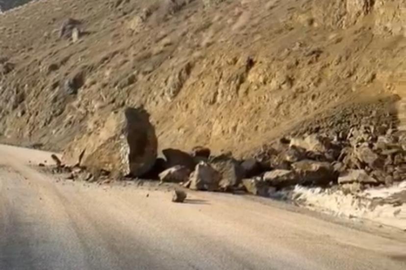 Yüksekova-Van karayolunda dev kaya parçaları yola düştü. Sürücüler facianın eşiğinden döndü.