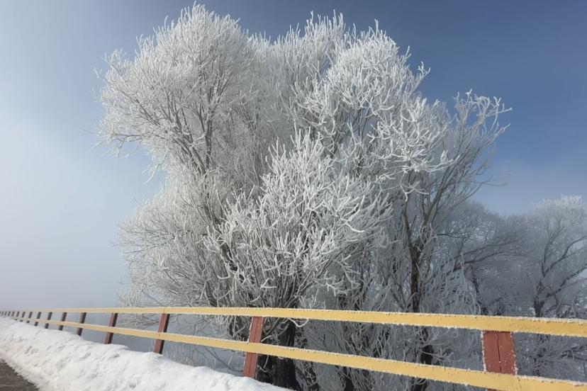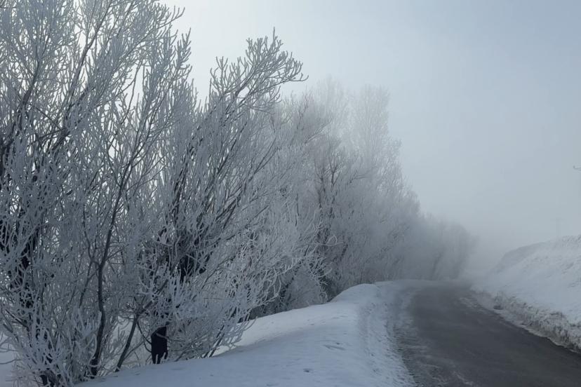 Hakkari genelinde etkili olan soğuk hava dalgası, Yüksekova ilçesinde doğayı beyaza bürüdü. Gece saatlerinde termometrelerin sıfırın altına düşmesiyle birlikte oluşan yoğun sis, yerini seyri doyumsuz bir kırağı tabakasına bıraktı.