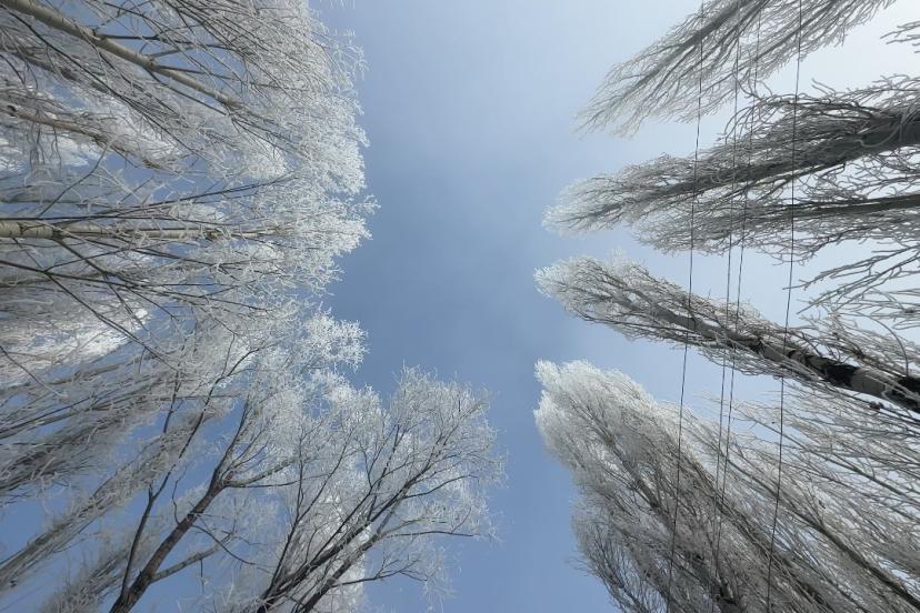 Hakkari’nin Yüksekova ilçesinde sisle birleşen kırağı ağaçları adeta birer sanat eserine dönüştürdü.