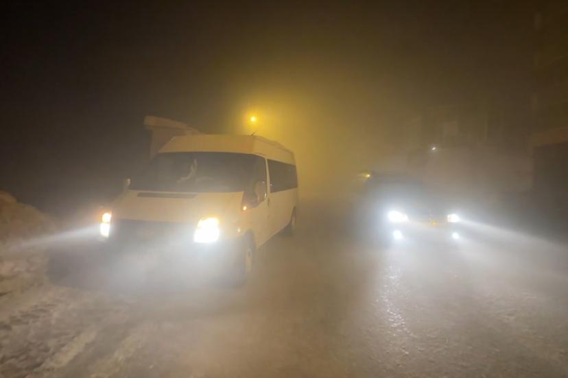 Hakkari’nin Yüksekova ilçesinde gece saatlerinden itibaren etkili olan yoğun sis nedeniyle görüş mesafesi yer yer 5 metreye kadar düştü.