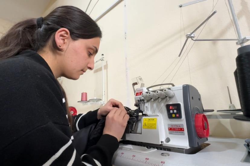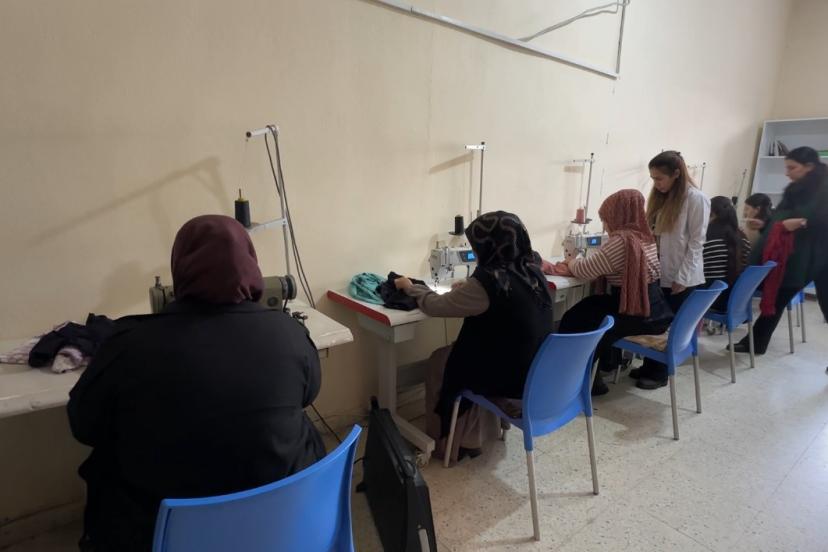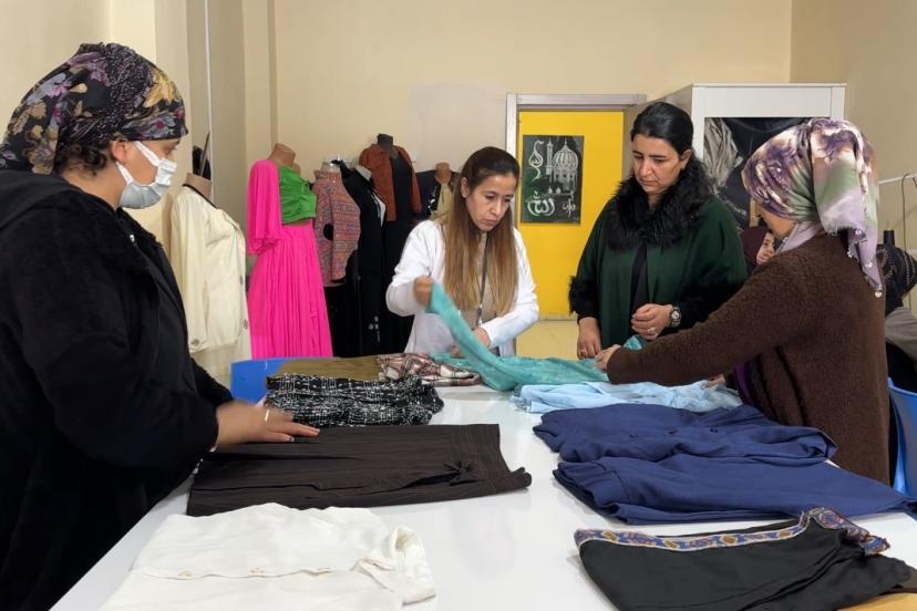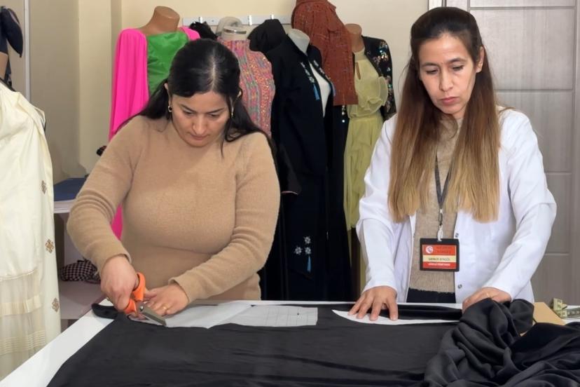 Merkezde açılan kurslara katılan kadınlar, mesleki beceri kazanmanın yanı sıra psikososyal destek eğitimleriyle de sosyalleşme imkanı buluyor. Giyim Üretim Kursu’nda eğitim gören kursiyerler, ilk aşamada geri dönüşüm malzemeleriyle pratik yaparak tecrübe kazanıyor. Kesim, dikim ve ölçü alma tekniklerinde uzmanlaşan kadınlar, tecrübe kazandıktan sonra kurum tarafından sağlanan kumaşlarla kendileri ve çocukları için kıyafetler dikiyor.