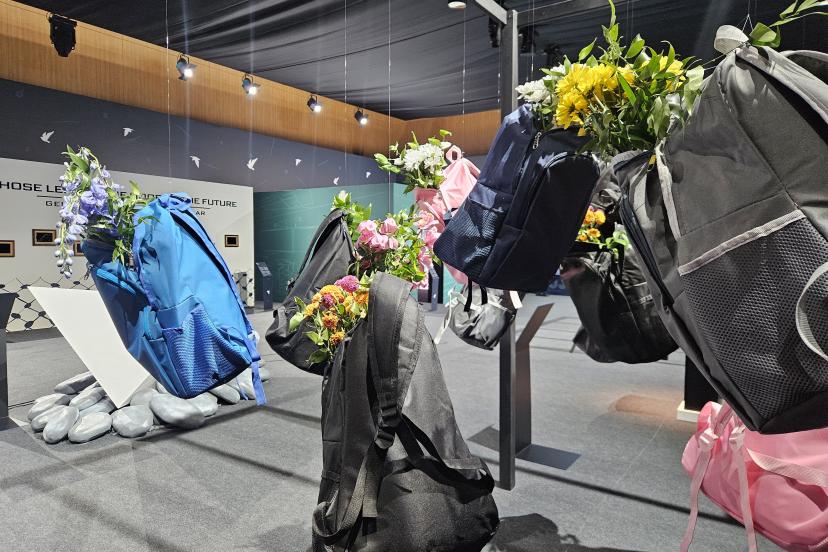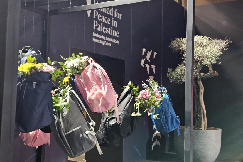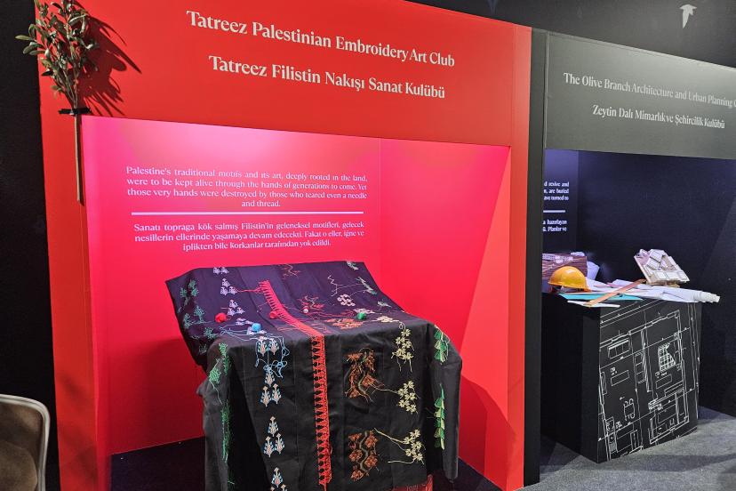 Sergide Filistinli öğrencilerin savaş nedeniyle yarım kalan dersleri, 'Umut Yeniden' başlıklı serginin merkezinde konumlandırılırken, zorluklar ve yıkımlar karşısında insanlığın vazgeçmeyen iradesi ve umudunu her şartta bulma gücünü temsil eden gemi maketi de bulunuyor.