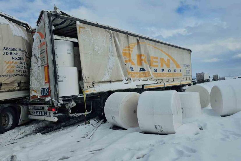 Bitlis’in Adilcevaz ilçesinde seyir halindeki kağıt yüklü tıra, aynı yönde ilerleyen başka bir tırın arkadan çarpması sonucu trafik kazası meydana geldi.