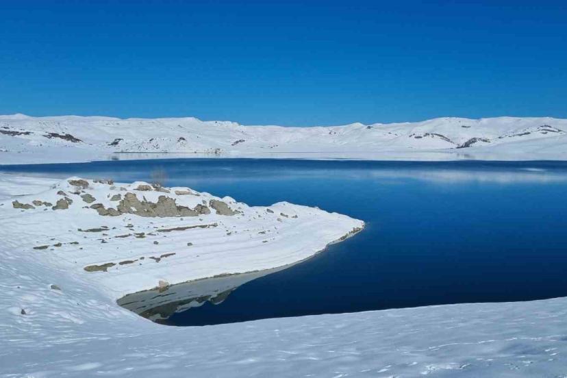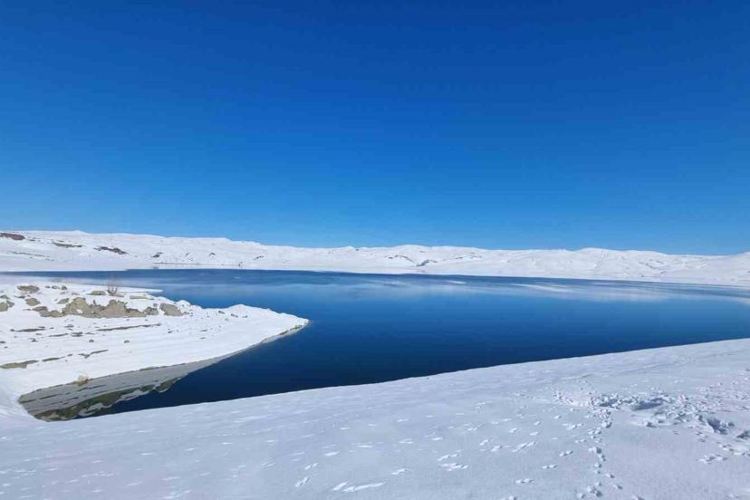 Kış boyunca donan baraj gölü, hava sıcaklıklarının yükselmesiyle birlikte yeniden su yüzeyini gösterdi. Karla kaplı tepeler ve berrak suyun buluştuğu manzara, izleyenlere görsel şölen sundu.