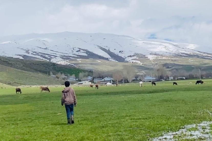 Ağrı’nın Patnos ilçesinde ovalarda bahar etkisini gösterirken, yüksek kesimlerde kar örtüsü varlığını sürdürüyor; kısa mesafede yaşanan bu iklim farkı dikkat çekiyor.