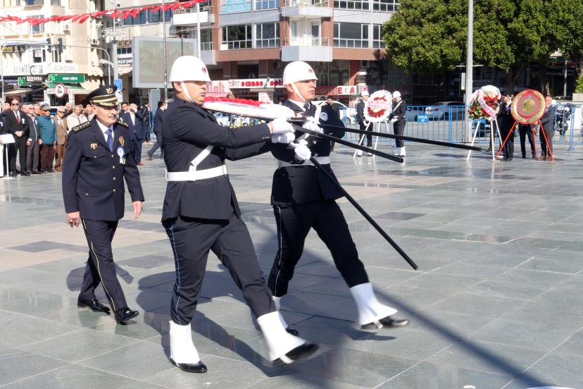 ANTALYA'da, Türk Polis Teşkilatı'nın 181'inci kuruluş yıl dönümü ve Polis Haftası kutlamaları kapsamında Atatürk Anıtı'na çelenk sunuldu.