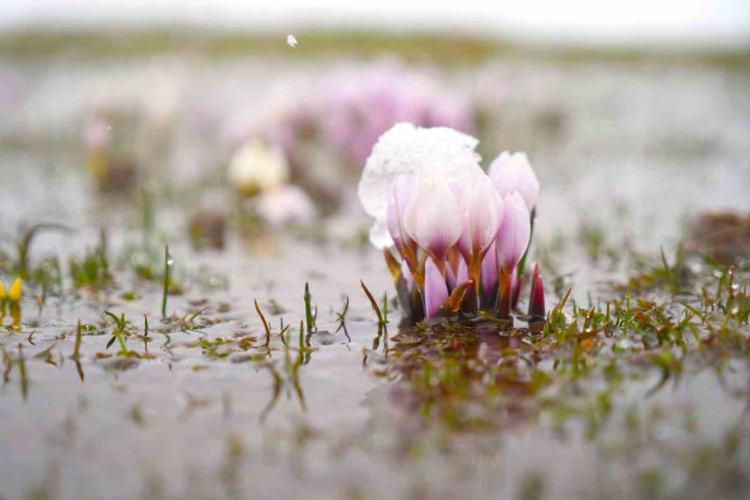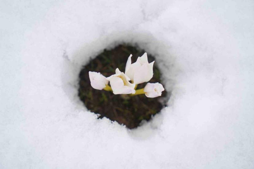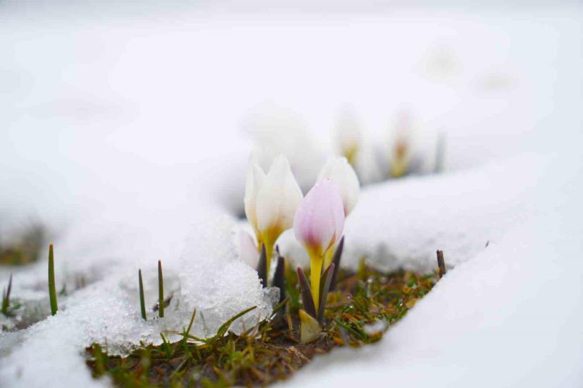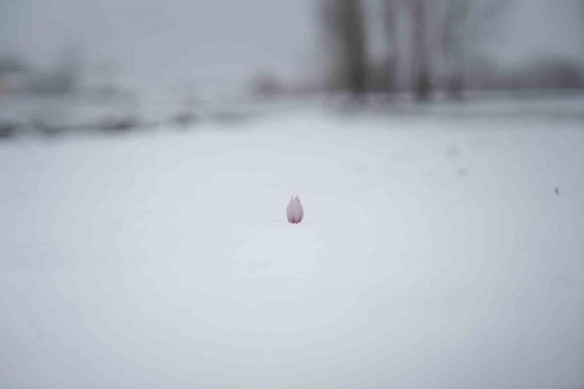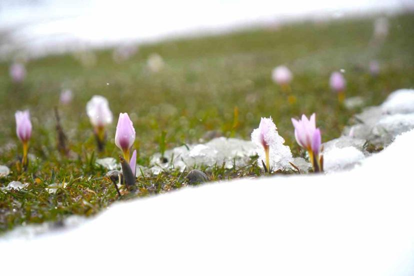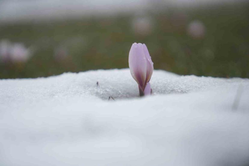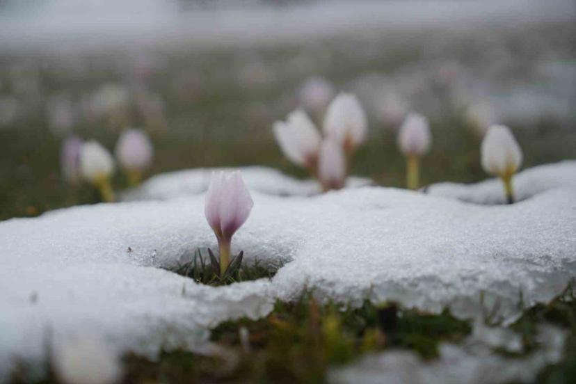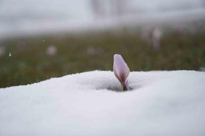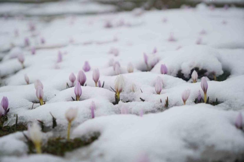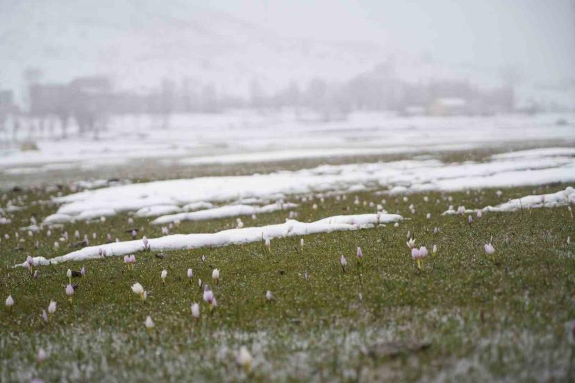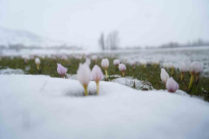 Baharın habercisi çiğdemler kar altında kaldı