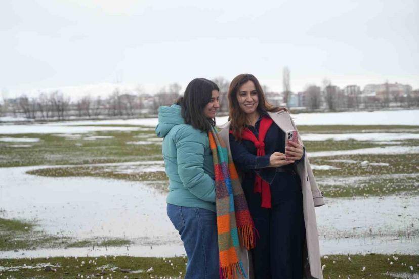 Zehra Yamaç, bugün kar altında açan çiğdem çiçeklerini görmek için bölgeye geldiklerini belirterek, "Bugün kar altında açan çiğdem çiçeklerini görmeye geldik. Çok güzel bir manzarası var. Arkadaşımla birlikte bol bol fotoğraf çektik ve çok mutlu bir şekilde buradan ayrılıyoruz. Sizleri de buraya bekleriz" ifadelerini kullandı.