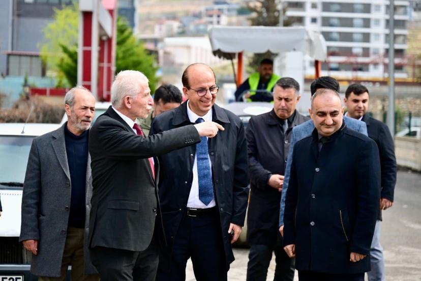 Tecde Mahallesi’ndeki yol yenileme yatırımlarını inceleyen Yeşilyurt Belediye Başkanı Prof.