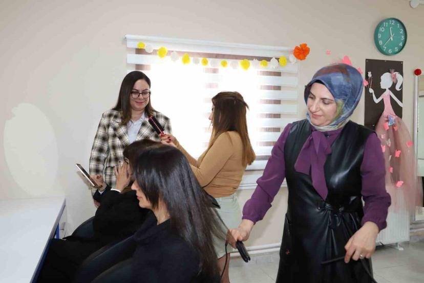 Battalgazi Belediyesi Gelinciktepe Kadın Yaşam Merkezi’nde kursiyerlerin giyim, seramik ve kuaför kurslarında hazırladığı el ...